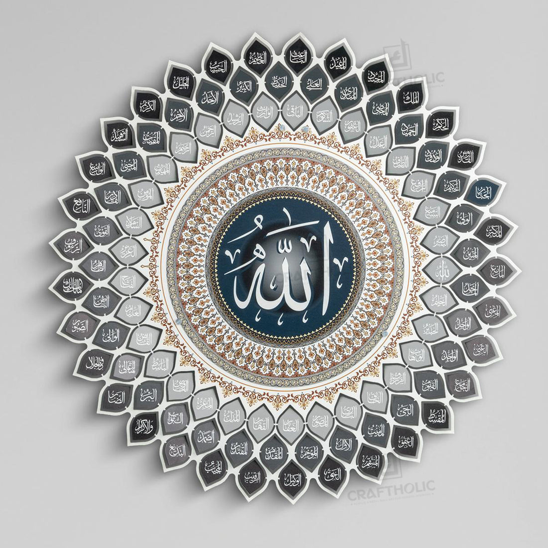 3D Islamic Wall Art - 99 Names of Allah in Metal | Modern Arabic Calligraphy Decor by Craftholic